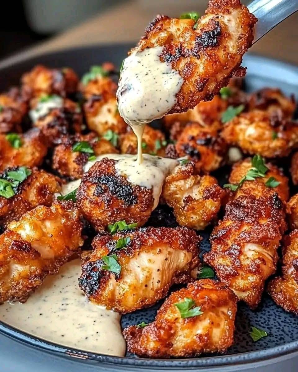 2. In una ciotola, mescola il pollo a dadini con l’olio d’oliva, la paprika, l’aglio in polvere, il sale, il pepe nero e il pepe di Cayenna, se lo desideri. Assicurati che i pezzi di pollo siano ben ricoperti!