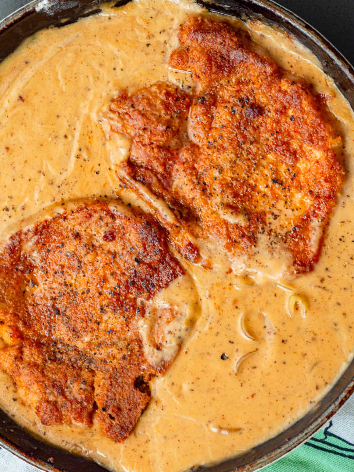 Le braciole di maiale e la salsa di mele possono essere buone, ma se puoi abbinare le costolette di maiale con una salsa salata, saporita e leggermente cremosa, perché non dovresti? Sembra incredibile (e lo è), ma non ho ancora nemmeno detto che anche le braciole di maiale sono leggermente scottate, quindi l’esterno è perfettamente croccante mentre l’interno è così succoso. Questo è il tipo di cena in padella semplice ma deliziosa. Versa questa salsa sul purè di patate e non sentirai una parola da nessuno a cena: saranno troppo occupati a gustarsela