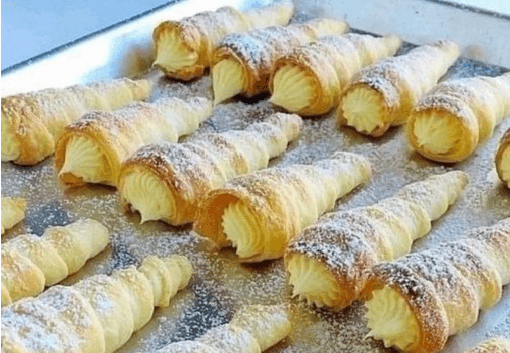 Croccanti e burrosi cannoncini di pasta sfoglia ripieni di vellutata e ricca crema pasticcera