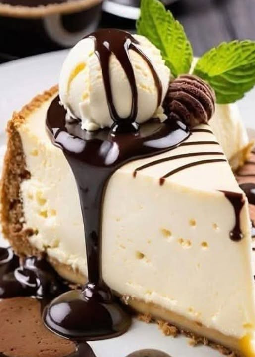 Cheesecake al forno classica con salsa al cioccolato e gelato💕😋