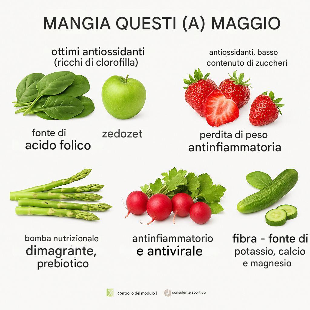 Maggio è il momento perfetto per scegliere frutta e verdura fresca di stagione che non solo hanno un sapore delizioso, ma favoriscono anche la salute e il benessere. Ecco un elenco di prodotti che vale la pena mangiare questo mese: ognuno di essi apporta qualcosa di prezioso alla vostra dieta!