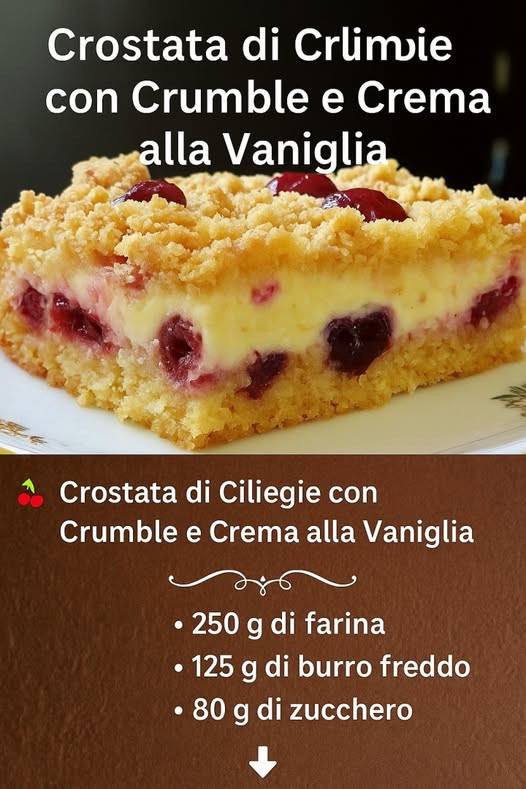 Crostata Friabile con Budino alla Vaniglia e Ciliegie sotto Crumble alla Cannella
