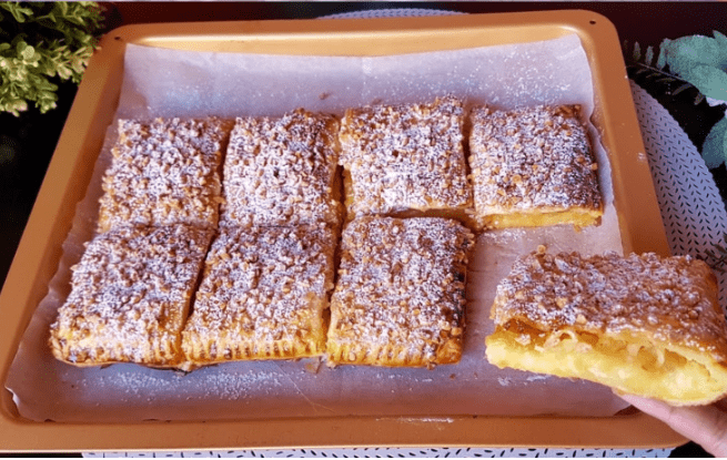 Lasciati tentare da questa deliziosa pasta sfoglia ripiena di mele, una delizia che unisce crema pasticcera cremosa e mele speziate avvolte in pasta sfoglia. Perfetta per un dessert accogliente o un’occasione speciale, questa ricetta delizierà sicuramente chiunque abbia un debole per i dolci. La combinazione di pasta sfoglia al burro e mele dolci e speziate alla cannella crea un dessert che è allo stesso tempo confortante ed elegante.
