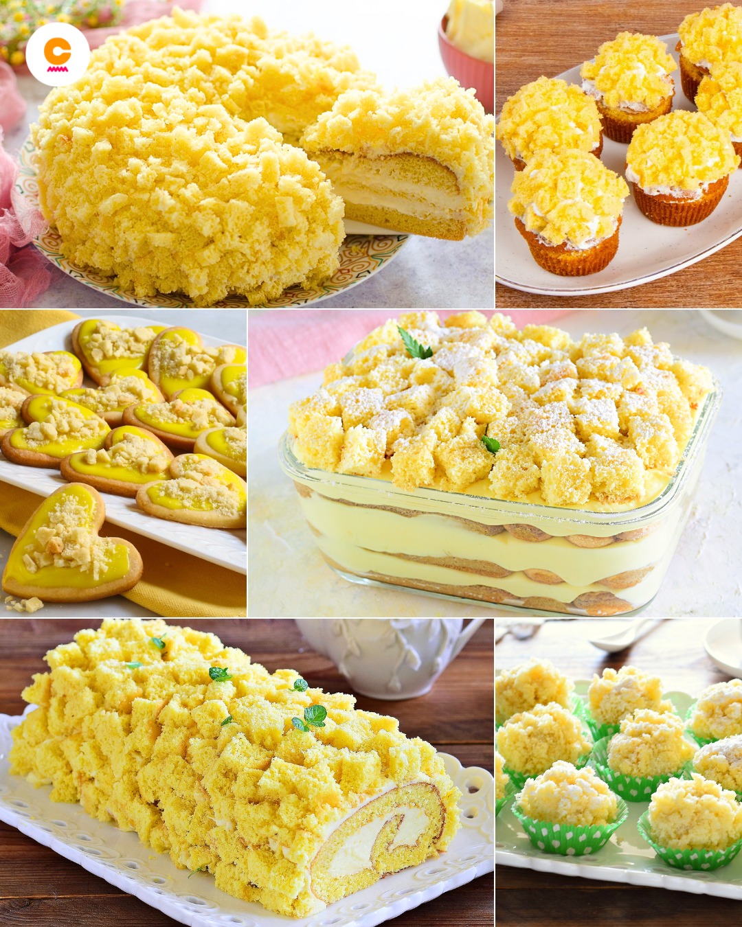 La mimosa può essere riprodotta anche in altri dessert: ne sono un esempio i cupcake, i biscotti, i tartufi e il rotolo che a lei si ispirano riproducendone i boccioli. Persino il tiramisù si veste di giallo, e per l’occasione viene farcito con una delicata crema al limoncello e decorato con cubetti di pan di Spagna.