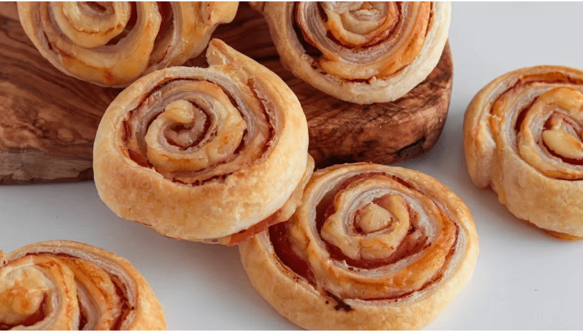 Girandole di pasta sfoglia prosciutto e formaggio: la ricetta veloce per un antipasto gustoso
