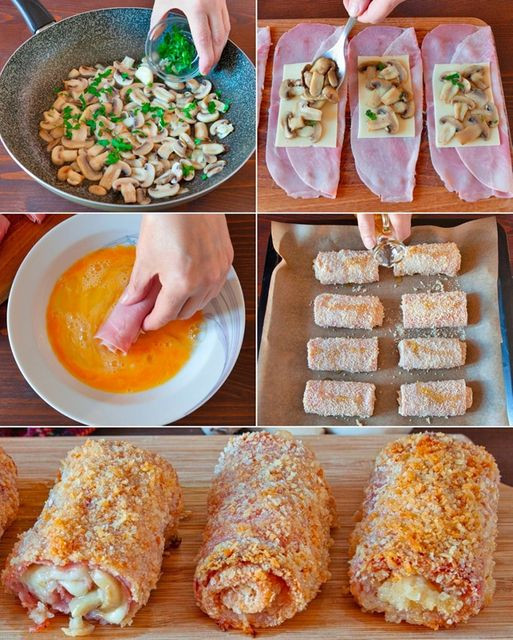 di prosciutto cotto, formaggio e funghi sono un antipasto veloce e gustoso.