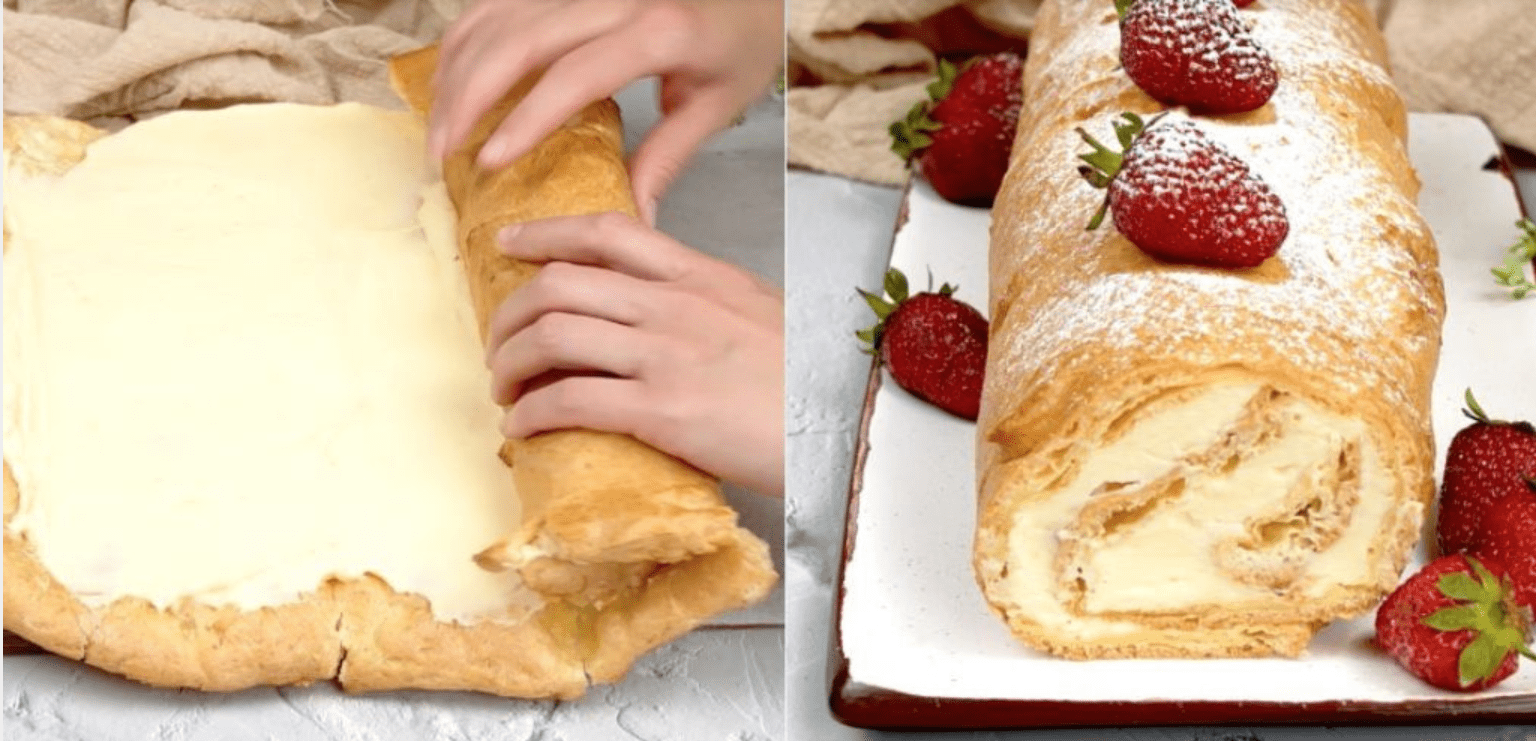 Arrotolate il rotolo di karpatka aiutandovi con la pergamena. Avvolgere in un foglio di pergamena e mettere da parte per 4 ore. Tagliare entrambe le estremità prima di servire.