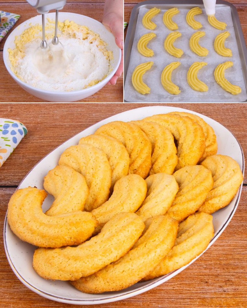 Trasferisci l’impasto in un sac à poche con bocchetta a stella e forma i krumiri su una teglia con carta forno 8: dovranno avere la caratteristica forma leggermente curva e una lunghezza di circa 8-10 cm.