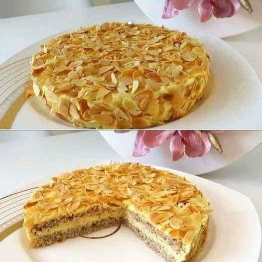 Versare 3 albumi in una ciotola e aggiungere un pizzico di sale. Sbattere gli albumi con un frullatore elettrico, quindi aggiungere 50 g di zucchero e continuare a mescolare, quindi aggiungere i 100 g di mandorle tostate tritate, mescolando delicatamente con un frullatore a immersione.