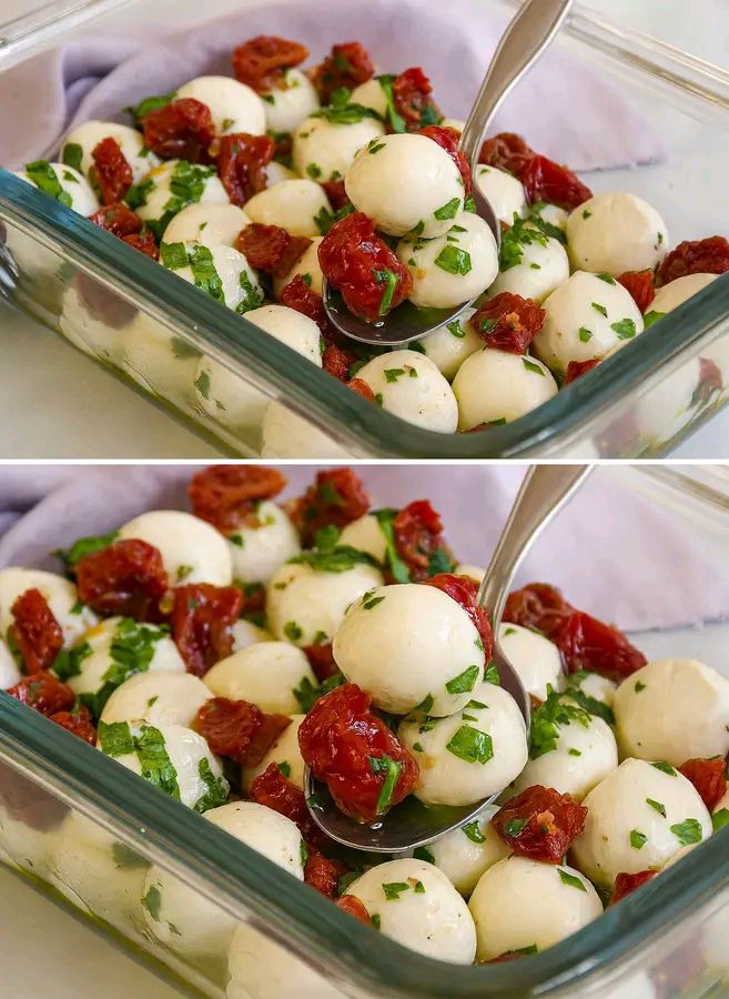 Le ho lasciate in frigo tutta la notte e il giorno dopo erano ancora più buone: queste mozzarelline marinate spariscono in un attimo