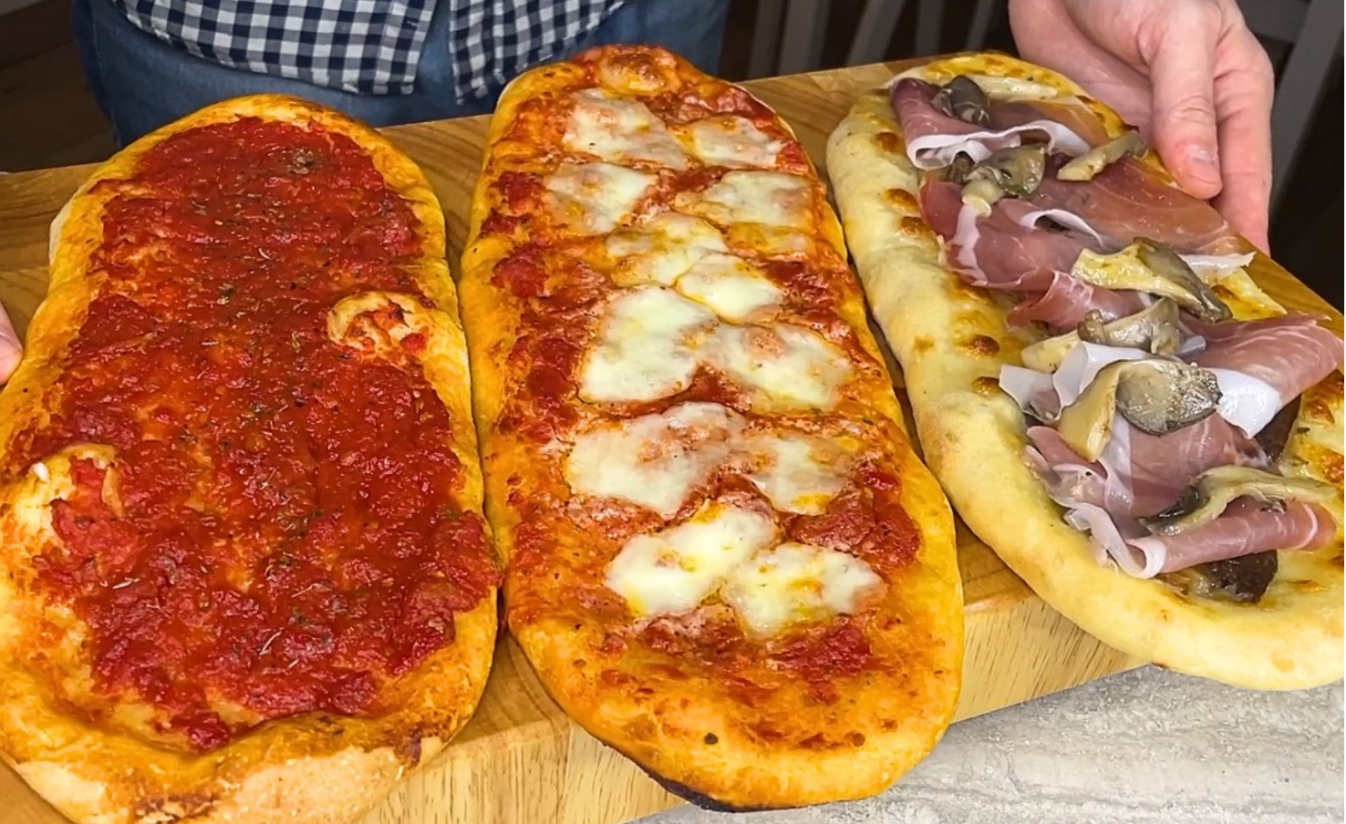 In questa ricetta, lo chef Michele Ghedini ti mostrerà come preparare lingue di pizza soffici e irresistibili. L’impasto, a base di farina 0, semola rimacinata, acqua, lievito di birra, olio extravergine di oliva, zucchero e sale, si realizza facilmente a mano in pochi minuti. Dopo la lievitazione, sarà pronto da suddividere in panetti da stendere nella tipica forma allungata e farcire a piacere. Una breve cottura in forno e le lingue saranno pronte da gustare!