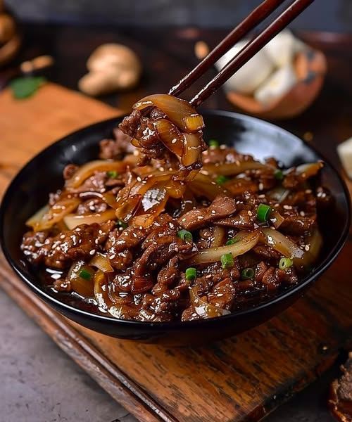 Aggiungi la salsa di soia e lo zucchero nella padella. Mescolare bene per ricoprire la carne e le cipolle con la salsa. Condire con sale e pepe a piacere. Continuare la cottura per altri 2 o 3 minuti, mescolando spesso, finché la salsa non sarà leggermente addensata e i sapori saranno ben amalgamati.