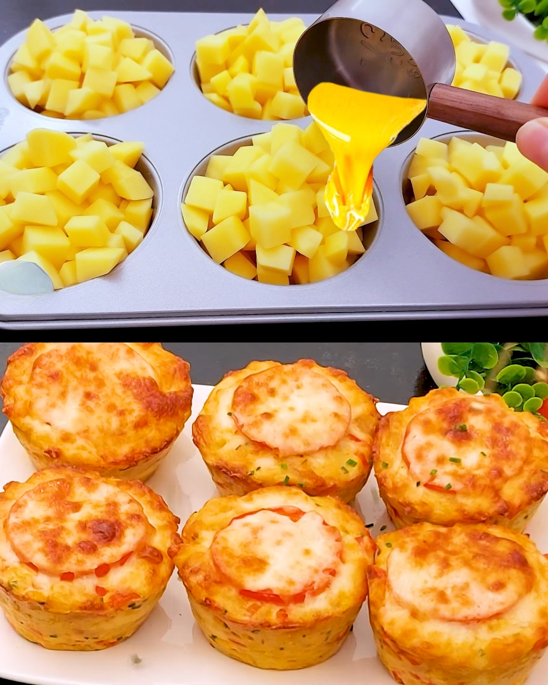 Aggiungere il composto di patate rimanente sulla parte superiore per riempire gli stampi per muffin.