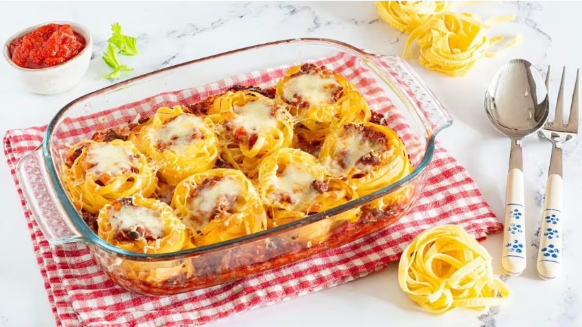 Una volta pronto, versa uno strato generoso di ragù di carne surul fondo de una pirofila.