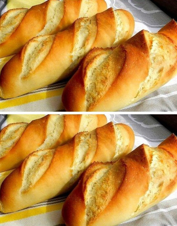 5. Quando saranno cresciuti avranno la forma definitiva della baguette. Se sono troppo grassi, allungare di più l’impasto con un po’ di farina.