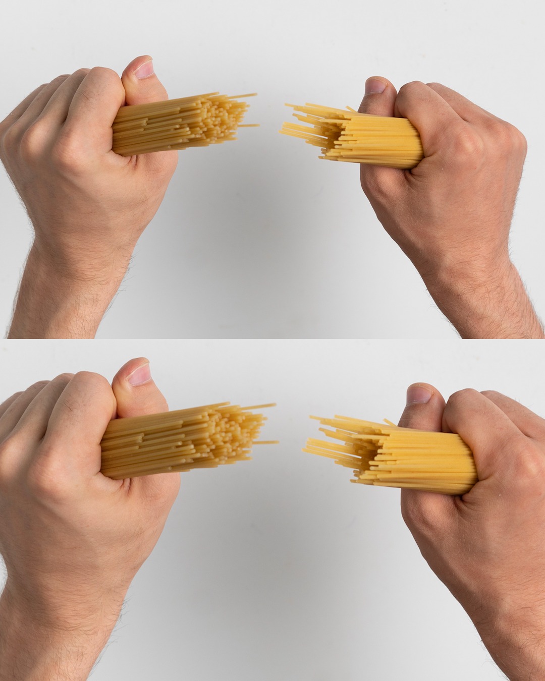 Spezzando gli spaghetti, i pezzi risultano di lunghezza irregolare, e alcuni potrebbero cuocersi più velocemente di altri. Questo porta a una consistenza non omogenea, con parti troppo morbide e altre ancora dure.