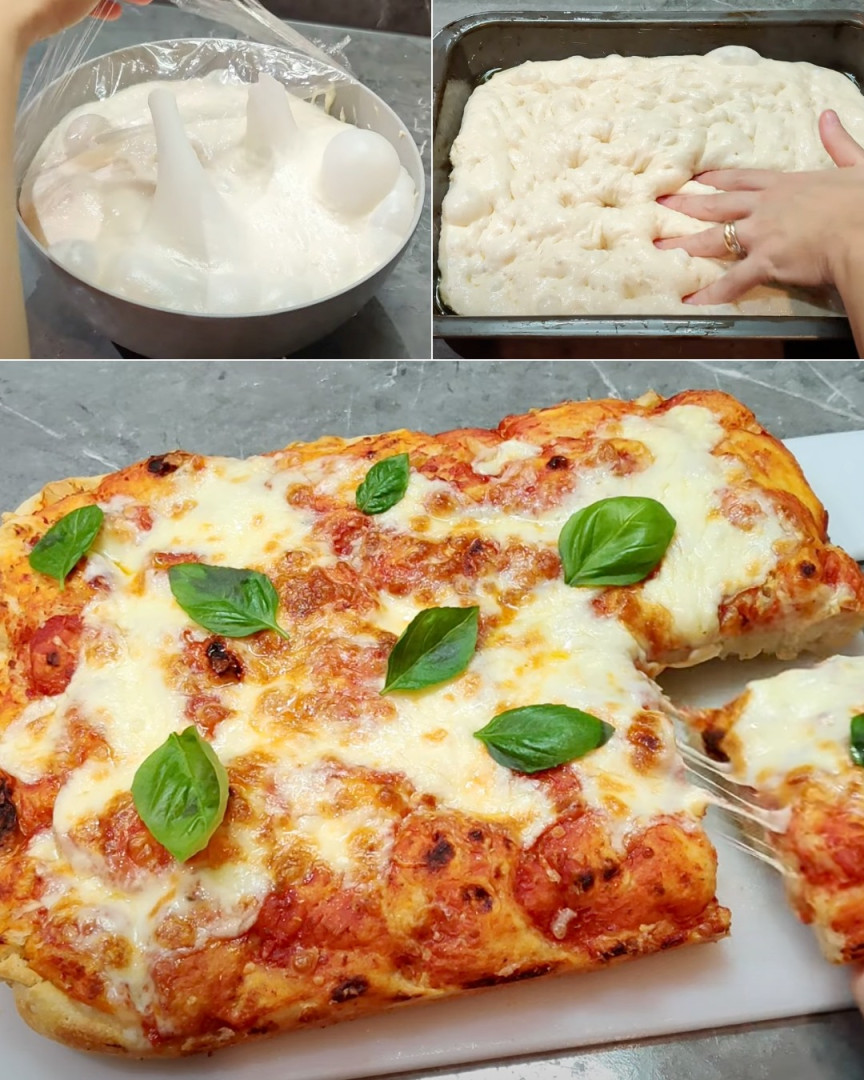 6. Stendi l’impasto nella teglia e fai riposare ancora 30 minuti.