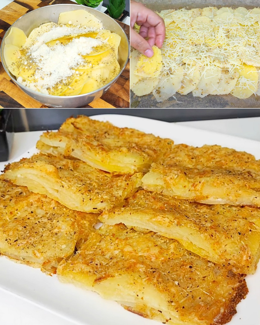 1. Taglia le patate a fettine sottili e condiscile con olio, sale, origano, pepe, aglio in polvere, parmigiano e pangrattato.