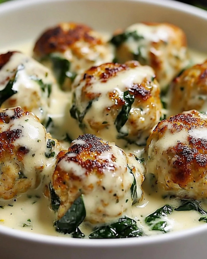 🍝Polpette di Pollo alla Ricotta con Salsa Alfredo agli Spinaci🍝