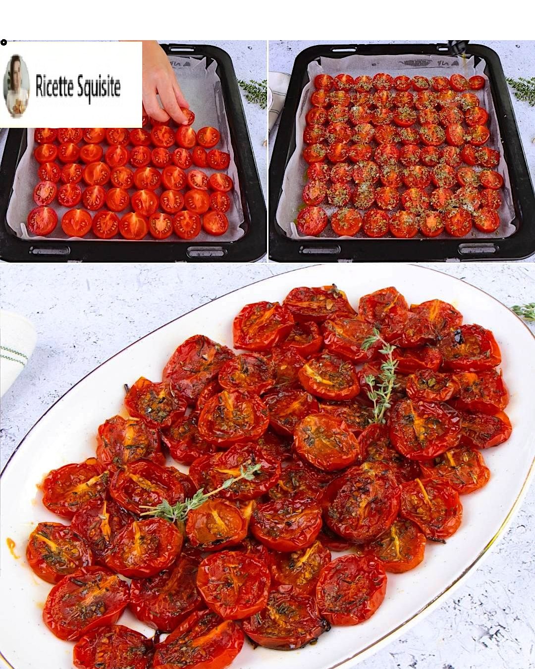 Il procedimento per preparare i pomodorini confit è davvero semplice. È importante lasciarli cuocere a lungo in forno, finché non risulteranno leggermente appassiti. Prediligi i pomodorini ciliegino o piccadilly, dolci e succosi.