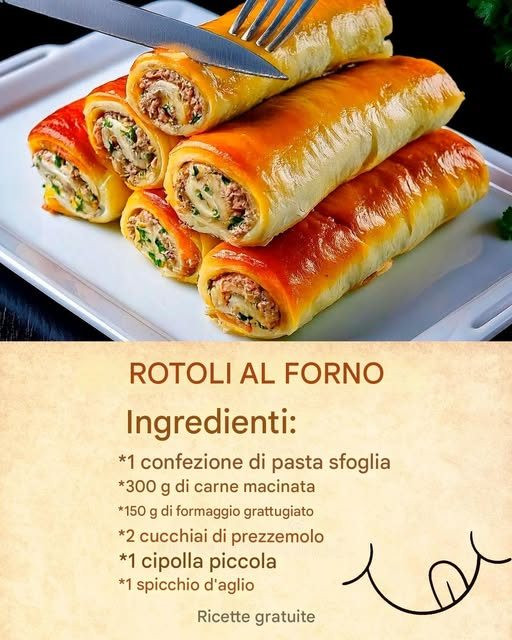 ROTOLI AL FORNO RIPIENI DI CARNE, FORMAGGIO ED ERBE ERBE 😋
