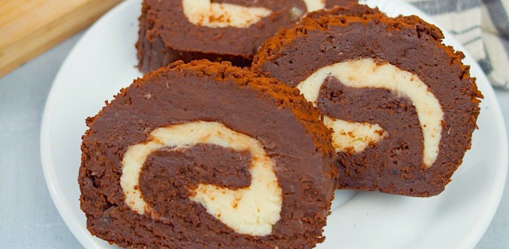 Per realizzare questo rotolo di castagne senza cottura vi serviranno castagne, cacao in polvere, zucchero a velo, burro, succo d’arancia e caffè. Gli ingredienti vengono mescolati insieme per formare un impasto, quindi riempito con una crema al burro.