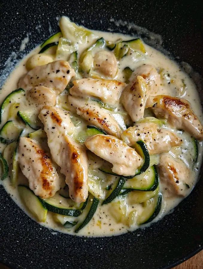 Straccetti di Petto di Pollo con Zucchine e Crema di Latte
