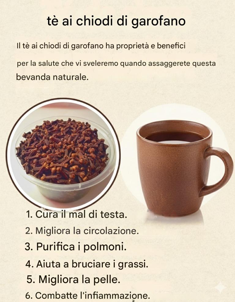 Hai mai sentito il tuo corpo desiderare una spinta, un sollievo naturale da infiammazioni, dolori o da quella stanchezza che ti ruba la luminosità? Guarda nella tua dispensa: quei piccoli chiodi di garofano, così comuni in cucina, possiedono un potere così intenso che possono essere la chiave per rivitalizzare la tua salute senza ricorrere a farmaci costosi. La tisana ai chiodi di garofano, un elisir caldo e aromatico, non è solo una bevanda; è un tesoro ancestrale che ha guarito generazioni, dalla cucina asiatica ai rimedi casalinghi delle nonne latinoamericane. E se ti dicessi che ogni sorso può lenire il tuo stomaco, rafforzare il tuo sistema immunitario, migliorare la circolazione e persino proteggerti da gravi malattie? Continua a leggere, perché questo segreto non si prende cura solo del tuo corpo; tocca la tua anima, risvegliando un’energia che ti fa sentire vivo, forte e connesso alla magia della natura.