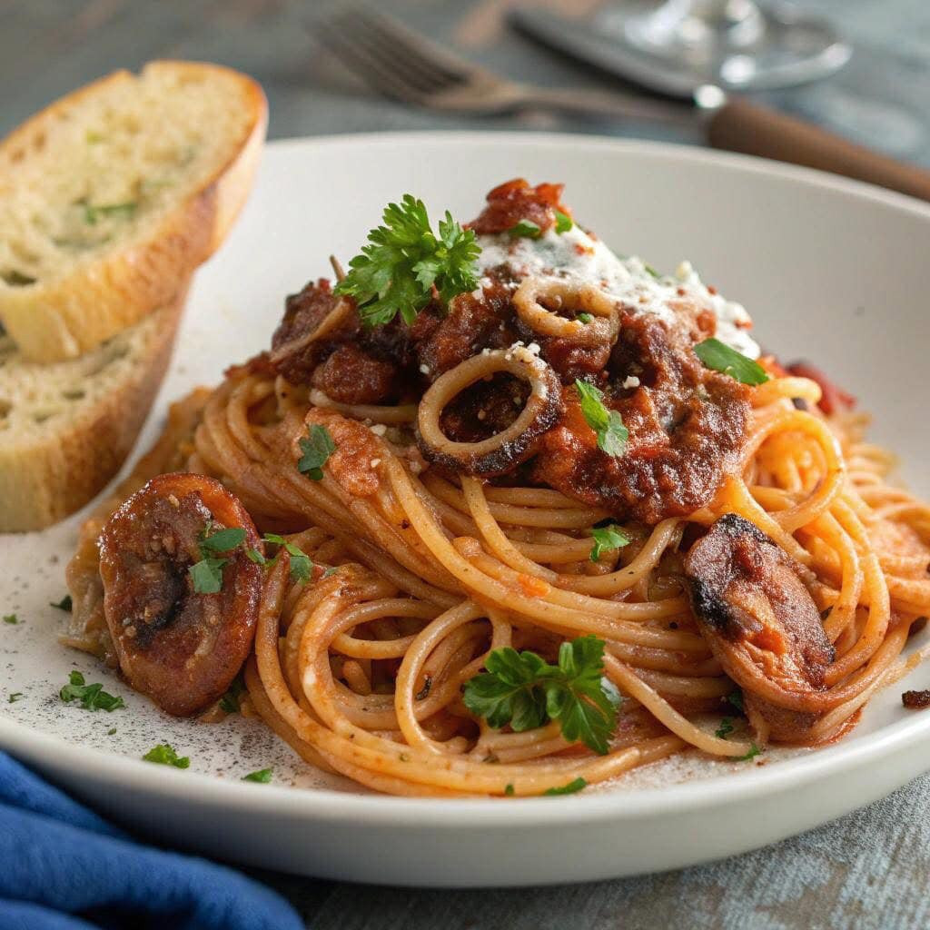 * Aggiungi i calamari al ragù e prosegui la cottura per altri 10-15 minuti, o fino a quando i calamari saranno teneri.
