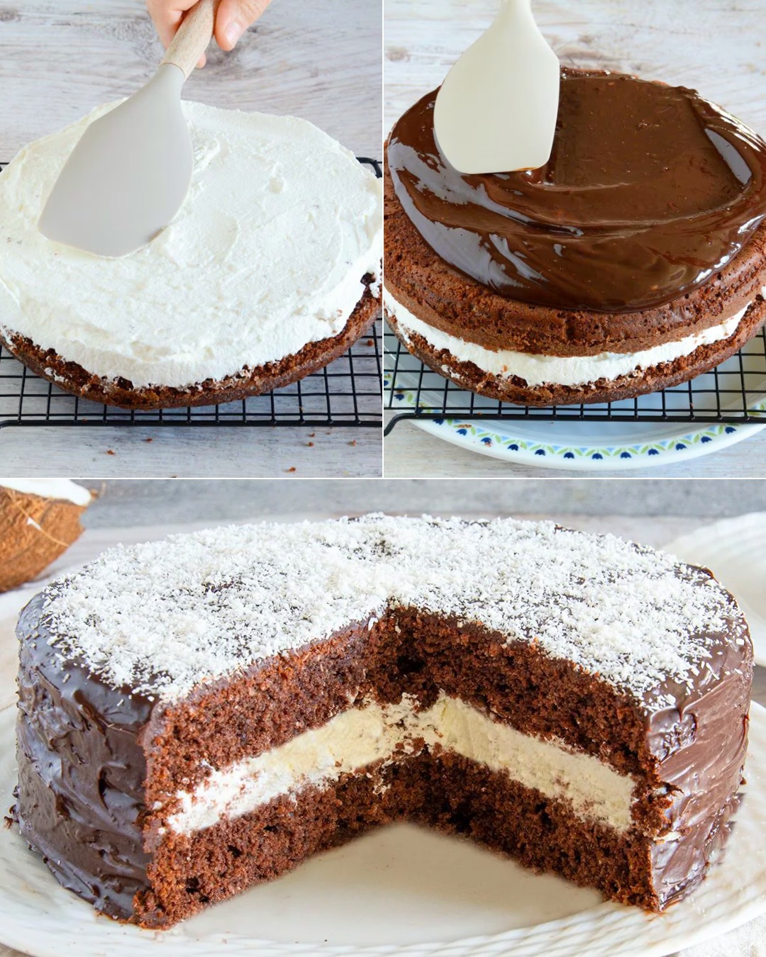 La torta pinguino è un dolce soffice e profumato, ispirato alle celebri merendine. Questa deliziosa torta è una sponge cake al cacao, farcita con una crema al cocco e ricoperta con ganache al cioccolato fondente. È perfetta per feste di compleanno o come dessert elegante.