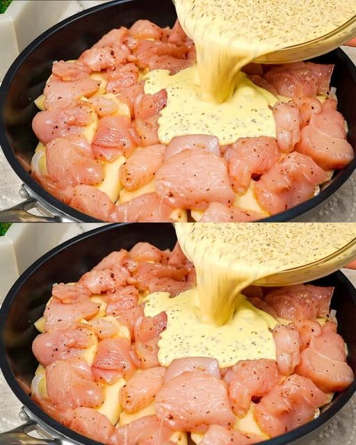 Un sapore incredibile di pollo e patate! Una ricetta facile e deliziosa che preparo ogni settimana! Ingredienti: 2 petti di pollo 3 patate 1 cipolla 2 uova Sale e pepe nero a piacere 1/2 cucchiaino di paprika dolce 470 ml (2 tazze) di panna 1 cucchiaio (1 cucchiaino) di erbe di Provenza 1/4 di cucchiaino (1 cucchiaino) di noce moscata 1 cucchiaio di burro o olio d’oliva Mozzarella grattugiata (per guarnire) 2 pomodori (facoltativo) Prezzemolo (facoltativo) 1/2 cucchiaino (1 cucchiaino) di sale Istruzioni: Vedi di più nella pagina successiva Ingredienti Preparazione: Preriscaldare il forno a 190 °C (380 °F). Pelare e affettare le patate. Tagliare a dadini la cipolla. Tagliare i petti di pollo a pezzi. Ingredienti Mescolare: In una ciotola capiente, sbattere le uova. Aggiungere sale, pepe nero, paprika, panna, erbe di Provenza e noce moscata. Mescolare bene. Assemblaggio del piatto: continua nella pagina successiva